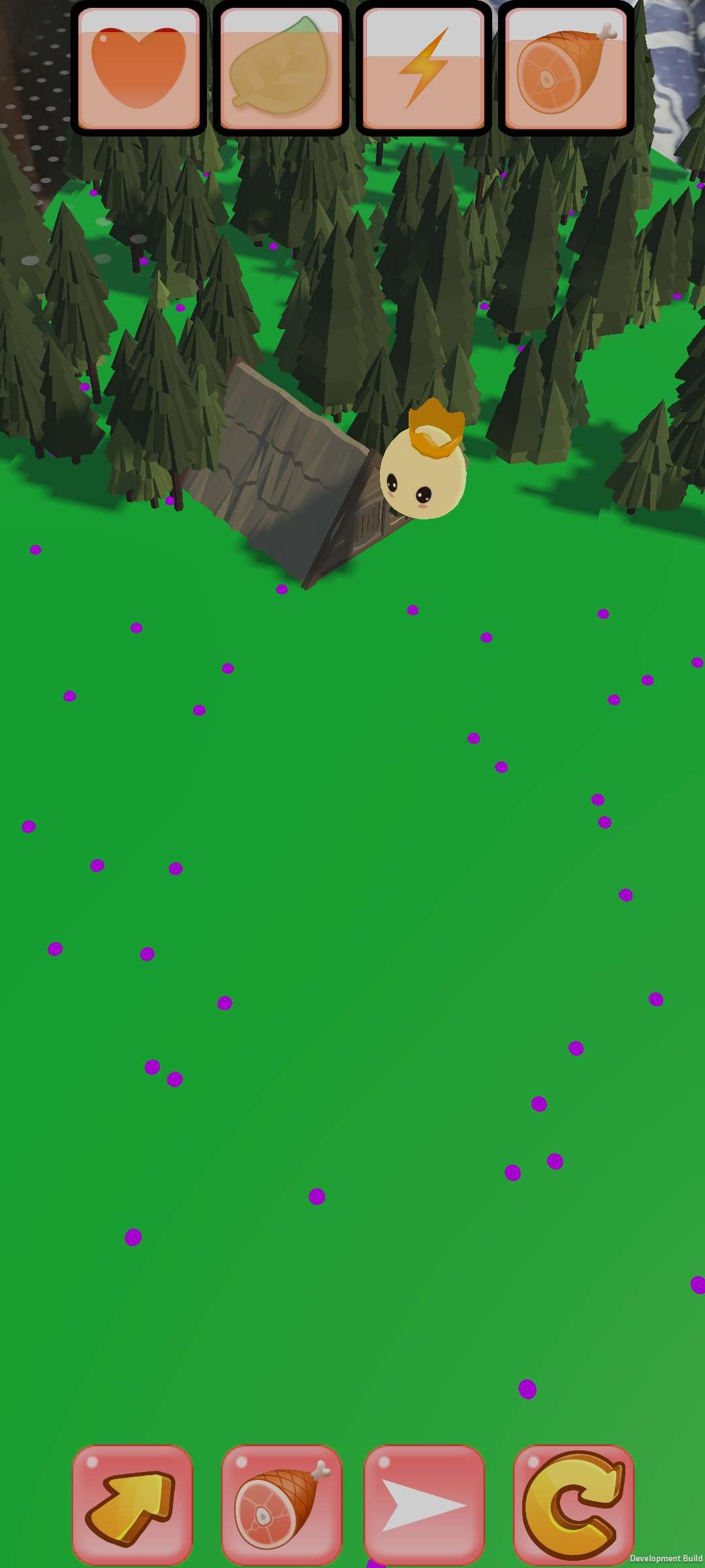 We chose to create a game where players take care of a pet creature that looks like a slime called Slimy. Slimy's world is generated to match the player's surroundings. It consists of a surface with Slimy at the center, its house, and a forest area.